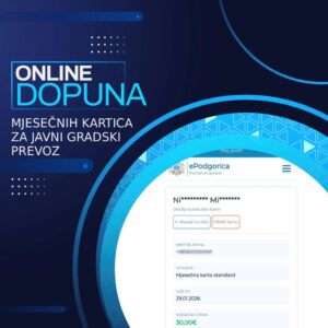 Nova usluga na portalu ePodgorica: Online dopuna mjesečnih kartica za javni gradski prevoz 05/02/2026 Opširnije...