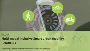 MISSION project aims to enhance urban mobility by integrating public transport services with shared vehicles, cycling and walking pathways , in order to make travel experiences seamless and more attractive. A Smart-App able to offer “door-to-door” customized travel solutions and information about level of service and safety will be designed with the active involvement of citizens and transport operators. By leveraging transferable modeling techniques, the App will be tested in several cities of the AdriaticIonian Region.